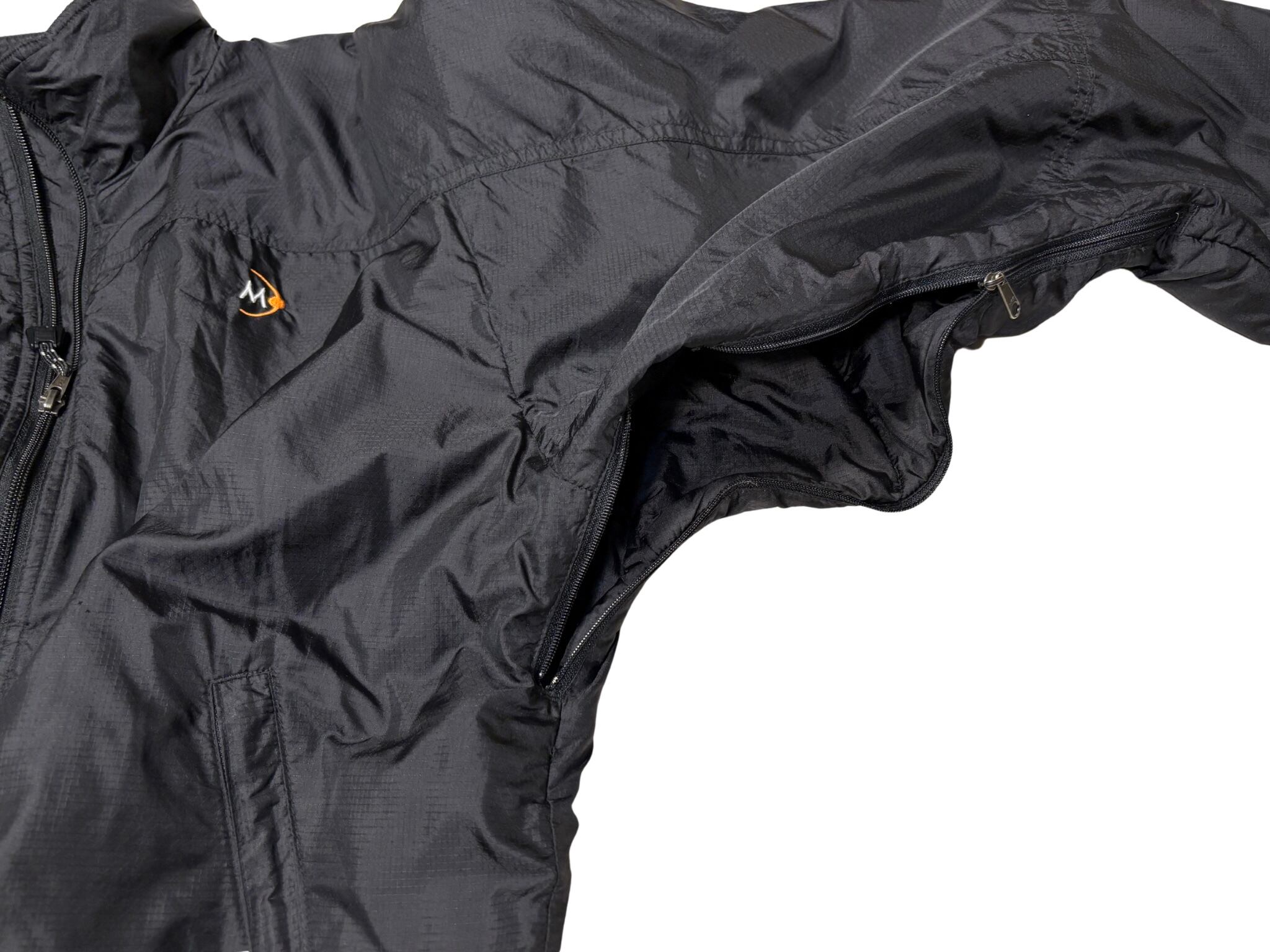 脇下にはベンチレーションジッパー装備、ミドルレイヤーとしてシェルの下に着込んでもベンチレーション可能です。