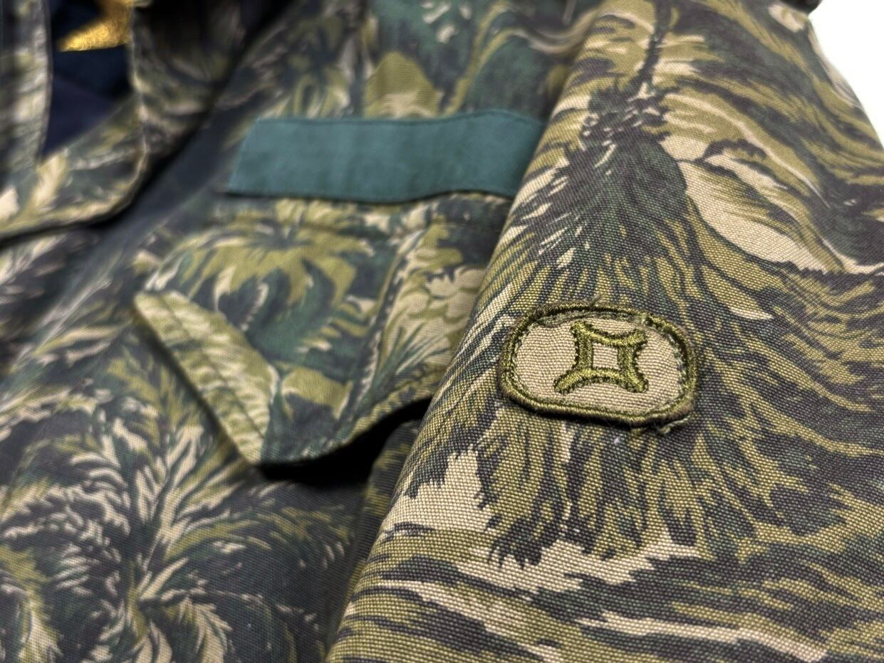 ミリタリー ジャケットの定番であるM-65に、オリジナルの、HOLLYWOOD CAMO 柄のテキスタイルを落とし込んだアイテム。