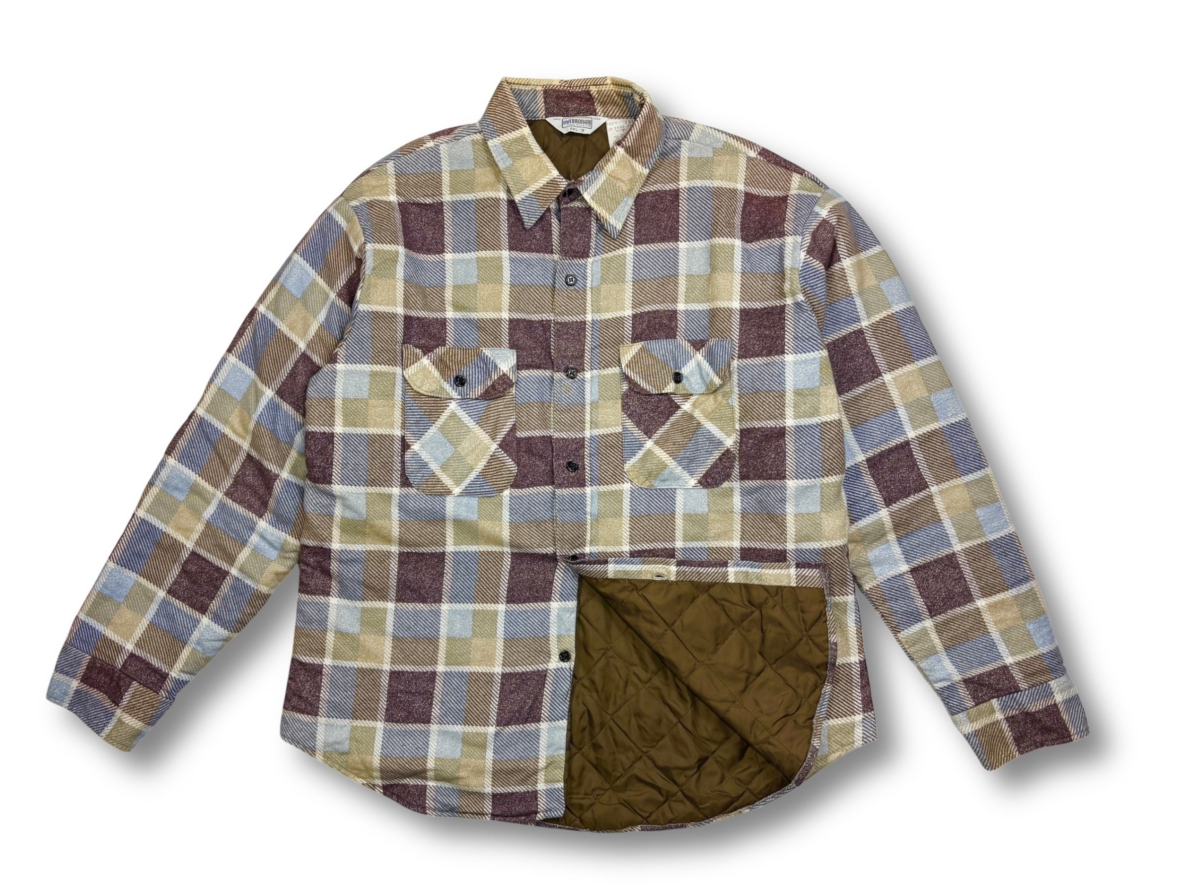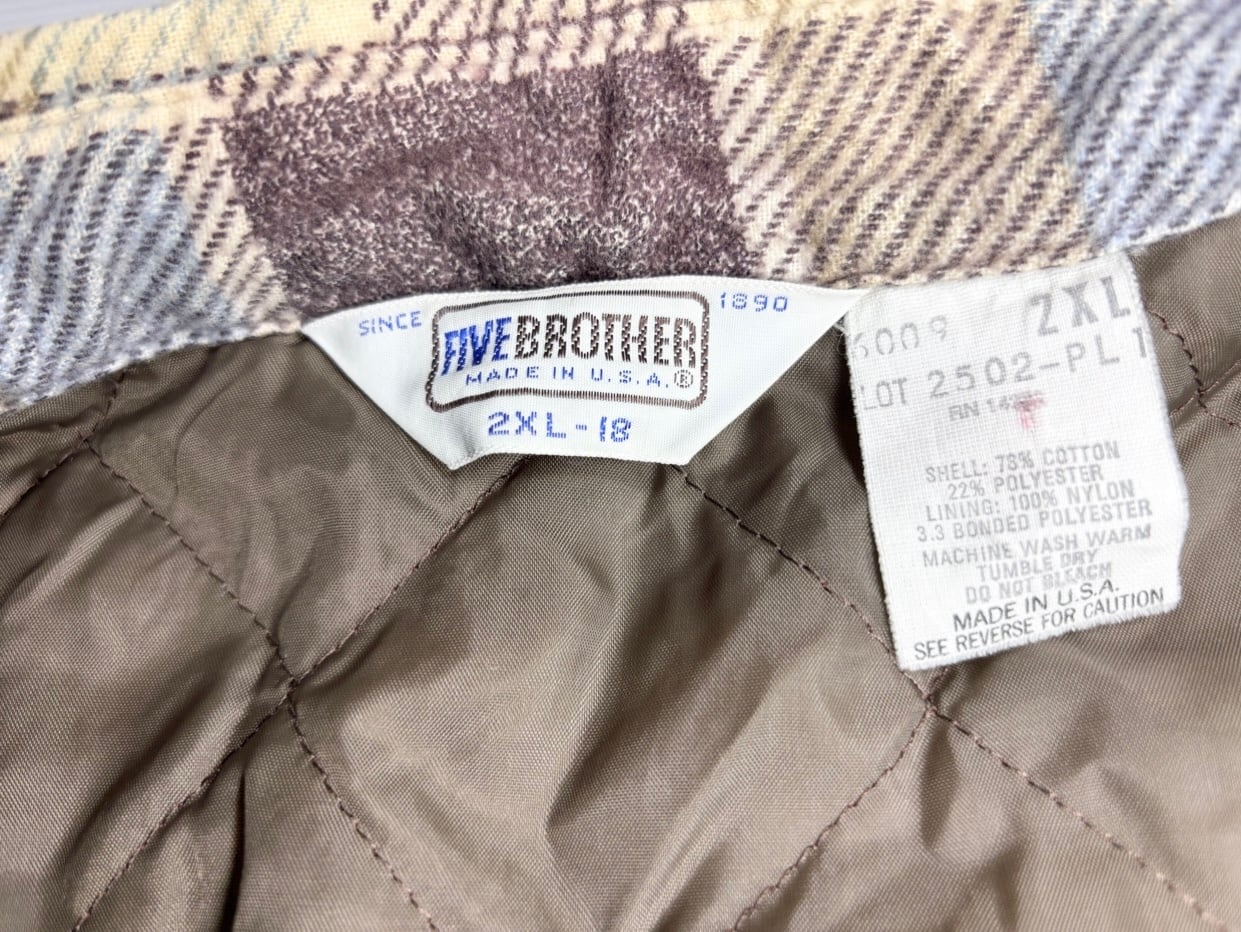 1890年にニューヨークでスタートし歴史の長い FIVE BROTHER(ファイブブラザー)の裏地キルティングライナーのプリントネルシャツ。