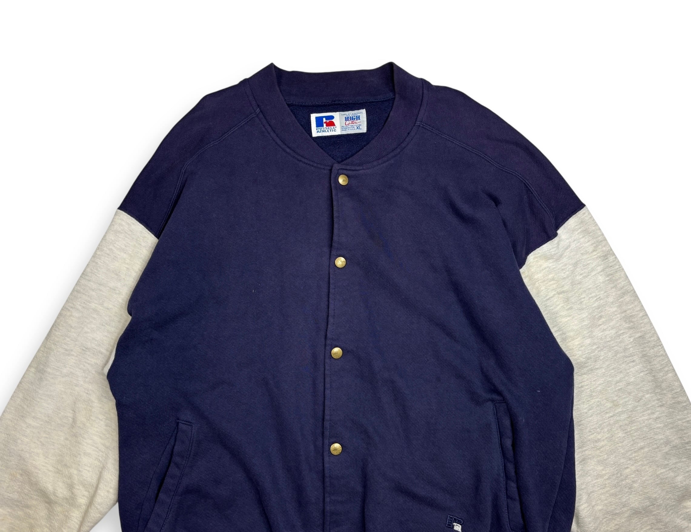 90s RUSSELL ATHLETIC PRO COTTON 2TONE SNAP CARDIGAN made in USA