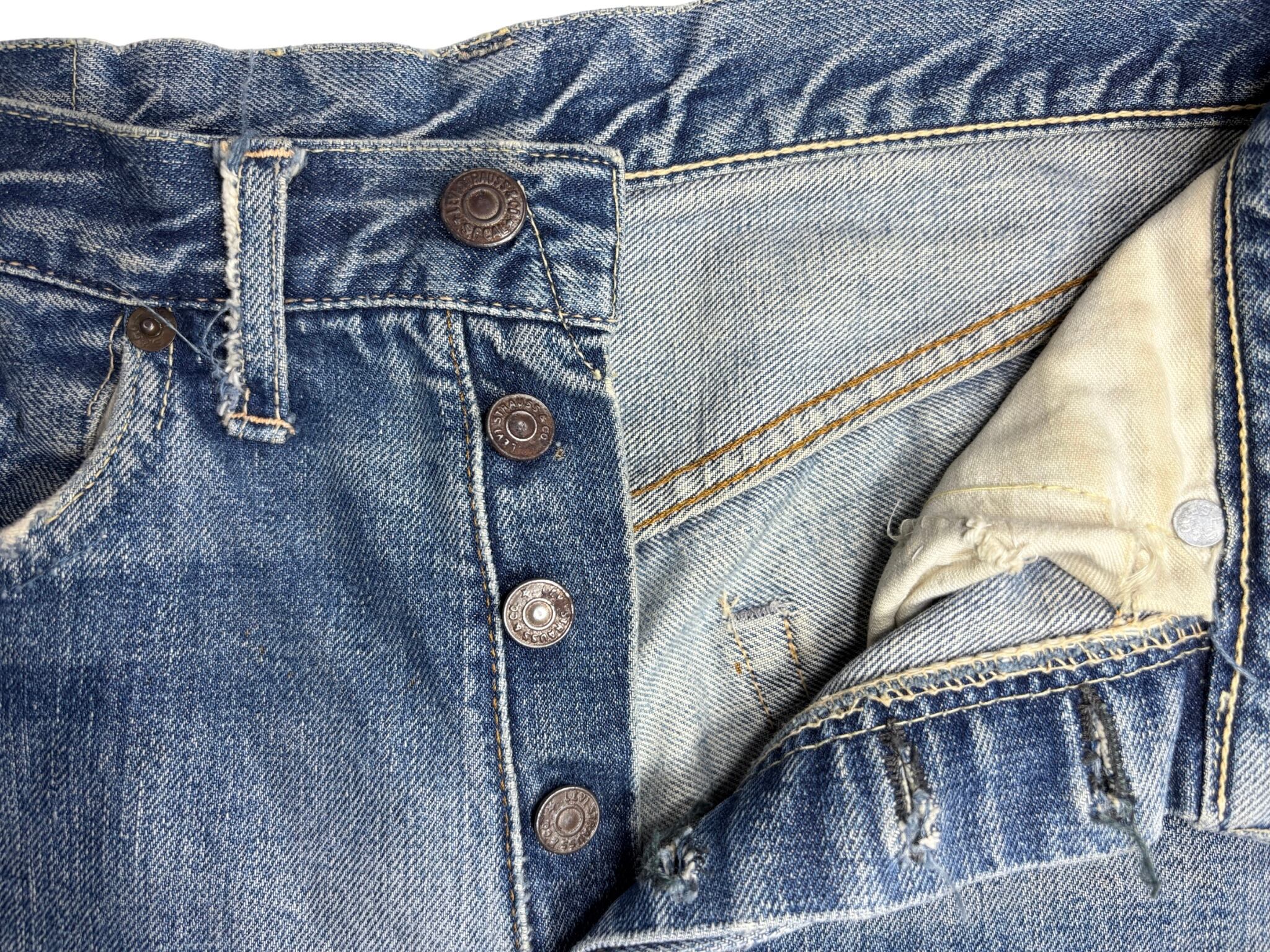 ボタン裏刻印「4」: 60年代後半の希少な工場番号(ウィチタフォールズ工場製)。