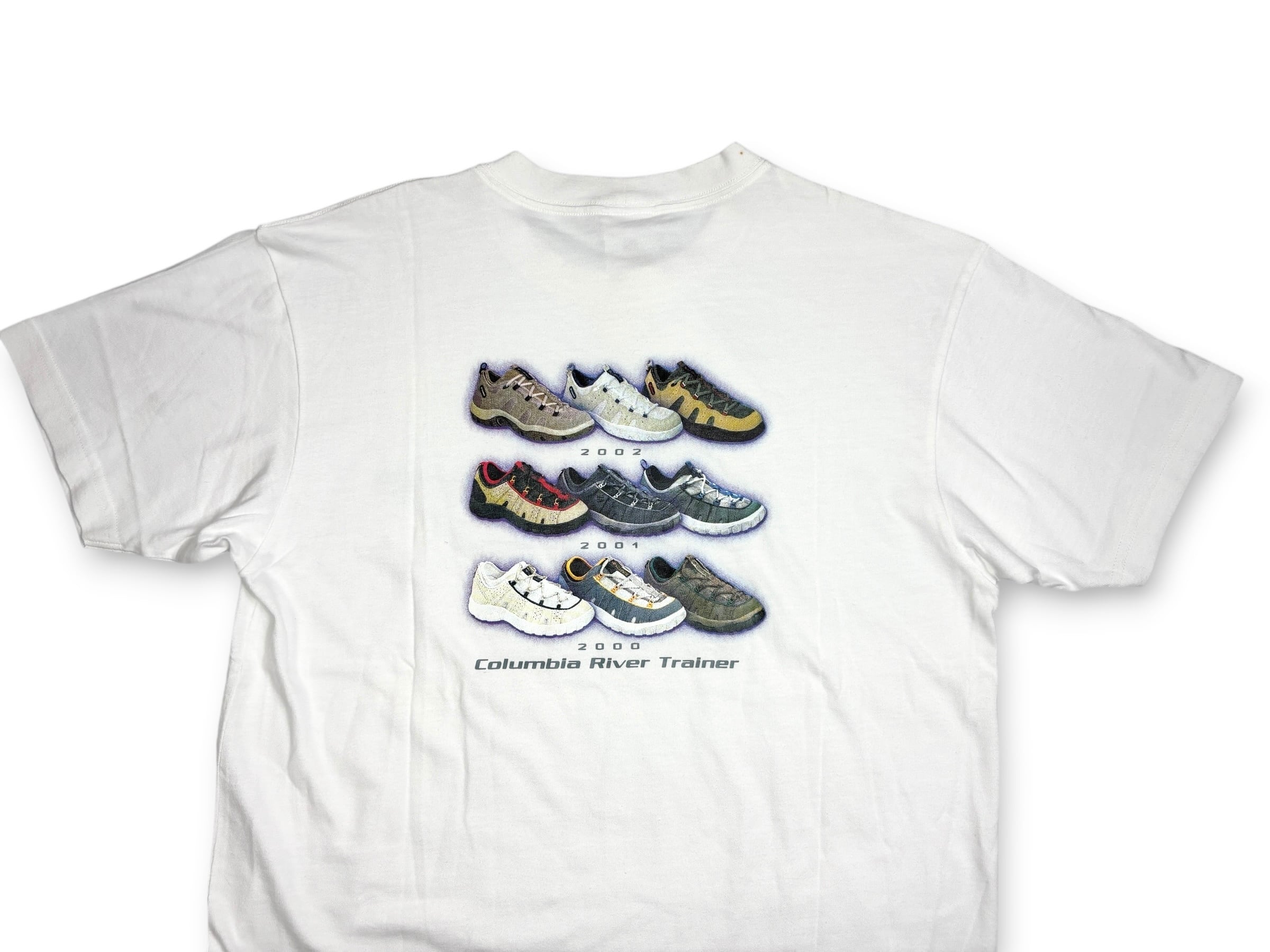 2000年から2002年にかけて展開された、歴代の「COLUMBIA RIVER TRAINER」というスニーカーシリーズがデザインされたアイテム。