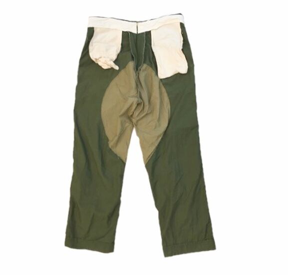 ウエストにはサスペンダーボタン、ヒップや膝の裏生等には裏地が当てられた完成された仕上がり。