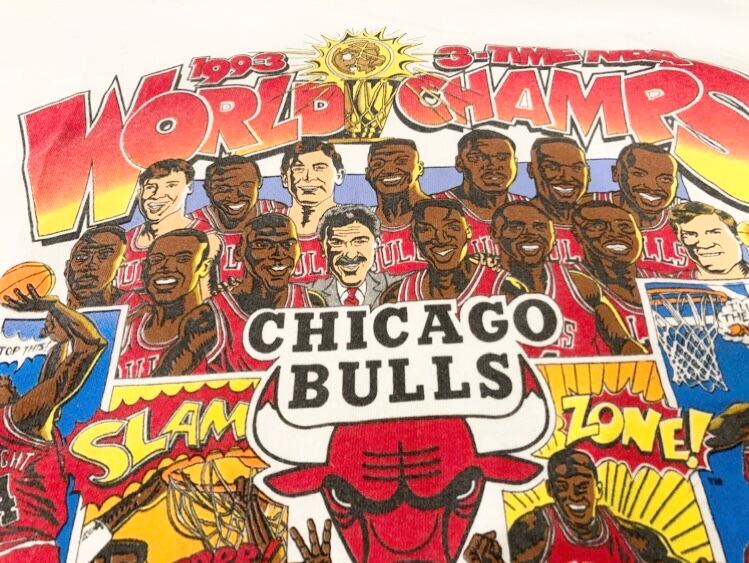 USA製 93s NBA CHICAGO BULLS ワールドチャンピオン 記念 Tシャツ。