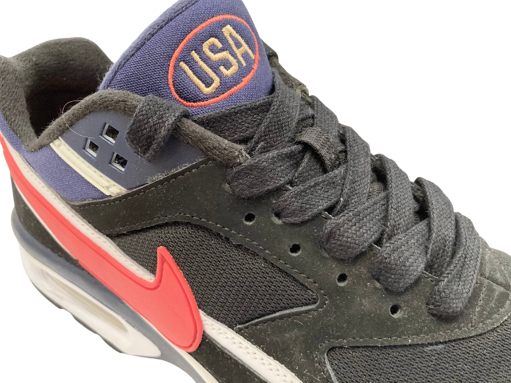 ブラック・ホワイトにネイビーで構成されたアッパーに、レッドスウォッシュ/ヒールカウンターには星条旗/タンにはUSAのロゴ刺繍等のアクセントが入る特別感満載の仕様となります。