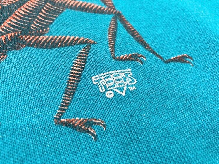発色の良いエメラルドグリーンのボディに、スコーピオンと ARIZONA(アリゾナ)の文字が蛍光色でプリントされたデザイン。
