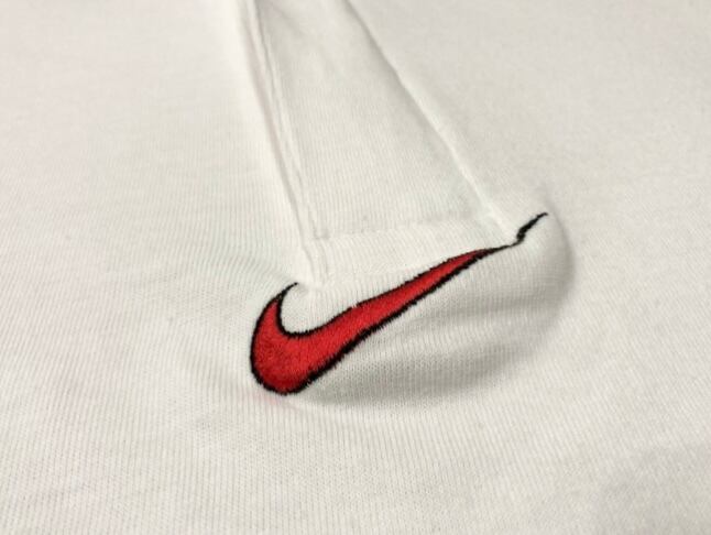 センターの NIKE スウォッシュの刺繍が非常にカッコいいアイテムとなります。