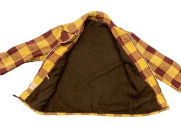 エンジとマスタードカラーの珍しい 配色の バッファローチェック 柄が印象的です。