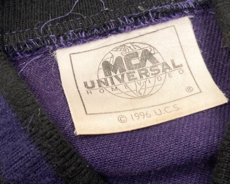 襟元には、映画配給会社である ユニバーサル ホームビデオ のタグがち付けられています。