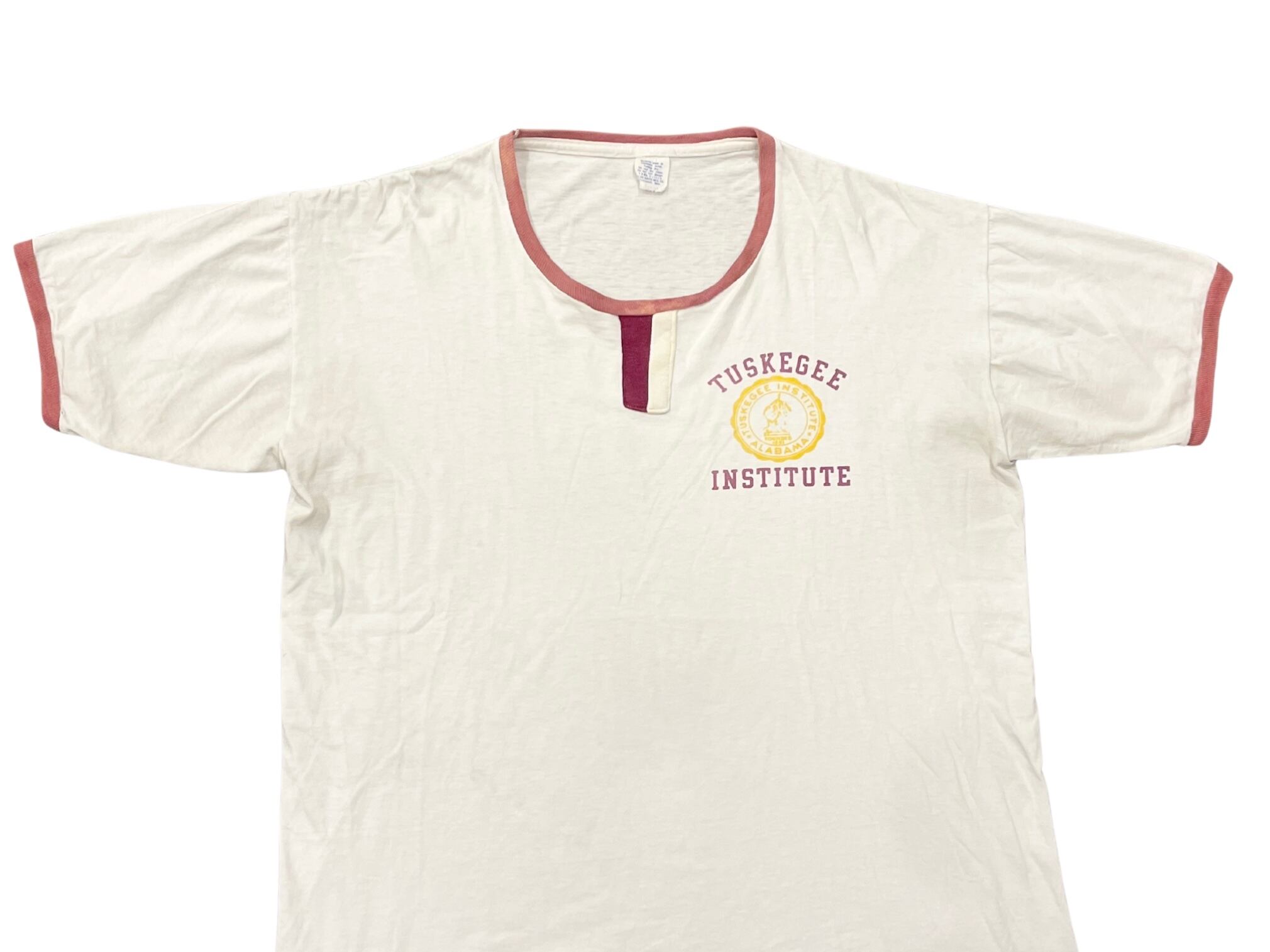 USA製 60s VELVA SHEEN TUSKEGEE IN STATUTE リンガー Tシャツ。